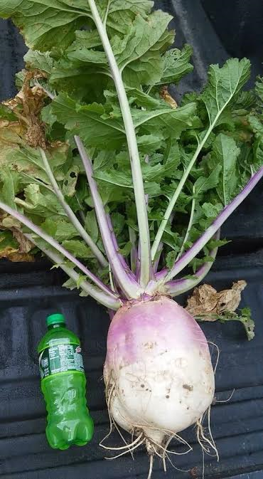 Brassica is an important part of any food plot program. Feeding deer when the cold arrives and the snow flies is just what our brassica blend does. With forage rape, kale, tillage radish, and 3 varieties of turnips, our brassica blend has it all. We don’t use the ordinary turnips you can get at the local feed mills. We have done a lot of research and testing to find the best and biggest kale and forage rape leaves, turnips and radishes to use in our blend. When the first frost hits, the leaves of the plants start to get sweet, just the way deer like it! Even after all the green leaves are eaten , the plot will still be filled with large turnips and radishes for the deer to dig up and eat. Tons of forage from September until late winter for a lot less than the price of “big buck on a bag” seed companies brassica offerings. Just look at the picture. No other brassica blend can produce results like the Northwoods blend can. Better hope your neighbor isn’t using this! Seeding rate is 6 pounds per acre in late July to early September.